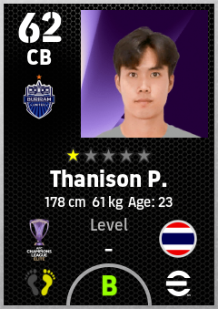 . Thanison P. is a Center Back footballer from Thailand who plays for Buriram United F.c. in eFootball 2026.