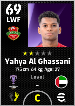 . Yahya Al Ghassani is a Left Wing Forward footballer from United Arab Emirates who plays for Shabab Al Ahli Dubai Fc in eFootball 2026.