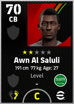 . Awn Al Saluli is a Center Back footballer from Saudi Arabia who plays for Free in eFootball 2026.