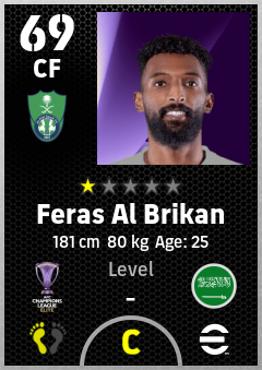 . Feras Al Brikan is a Center Forward footballer from Saudi Arabia who plays for Al Ahli Saudi Fc in eFootball 2026.
