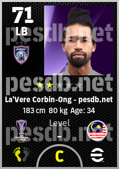 . La'vere Corbin-Ong is a Left Back footballer from Malaysia who plays for Johor Darul Ta'zim Fc in eFootball 2026.
