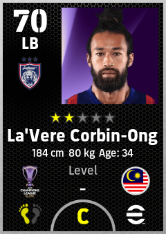 . La'vere Corbin-Ong is a Left Back footballer from Malaysia who plays for Johor Darul Ta'zim Fc in eFootball 2026.