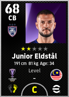 . Junior Eldstål is a Center Back footballer from Malaysia who plays for Johor Darul Ta'zim Fc in eFootball 2026.