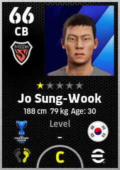. Jo Sung-Wook is a Center Back footballer from Korea Republic who plays for Fc Pohang Steelers in eFootball 2026.