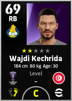 . Wajdi Kechrida is a Right Back footballer from Tunisia who plays for Al Gharafa Sc in eFootball 2026.