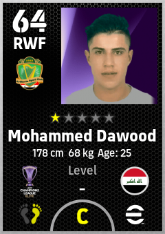 . Mohammed Dawood is a Right Wing Forward footballer from Iraq who plays for Al Shorta Sc in eFootball 2026.