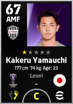 . Kakeru Yamauchi is a Attacking Midfielder footballer from Japan who plays for Vissel Kobe in eFootball 2026.