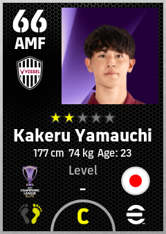 . Kakeru Yamauchi is a Attacking Midfielder footballer from Japan who plays for Vissel Kobe in eFootball 2026.