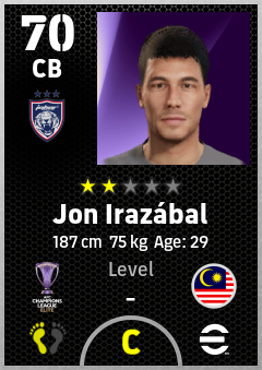 . Jon Irazábal is a Center Back footballer from Malaysia who plays for Johor Darul Ta'zim Fc in eFootball 2026.