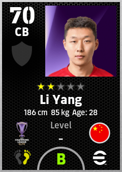 . Li Yang is a Center Back footballer from China Pr who plays for Chengdu Rongcheng Fc in eFootball 2026.