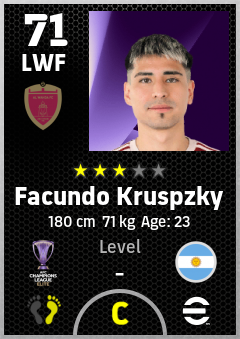 . Facundo Kruspzky is a Left Wing Forward footballer from Argentina who plays for Al Wahda Fc in eFootball 2026.