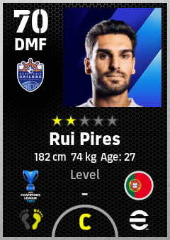 . Rui Pires is a Defensive Midfielder footballer from Portugal who plays for Lion City Sailors Fc in eFootball 2026.