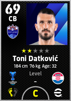 . Toni Datković is a Center Back footballer from Croatia who plays for Lion City Sailors Fc in eFootball 2026.