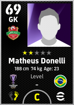 . Matheus Donelli is a Goalkeeper footballer from Brazil who plays for Shabab Al Ahli Dubai Fc in eFootball 2026.
