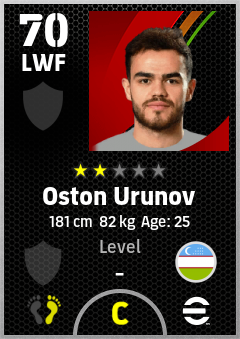 . Oston Urunov is a Left Wing Forward footballer from Uzbekistan who plays for Free in eFootball 2026.