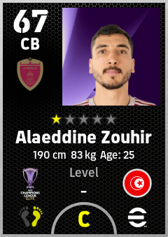 . Alaeddine Zouhir is a Center Back footballer from Tunisia who plays for Al Wahda Fc in eFootball 2026.