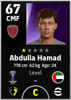 . Abdulla Hamad is a Center Midfielder footballer from United Arab Emirates who plays for Al Wahda Fc in eFootball 2026.