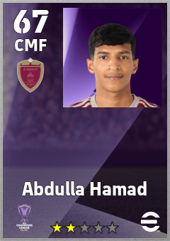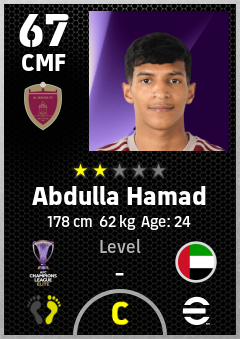 . Abdulla Hamad is a Center Midfielder footballer from United Arab Emirates who plays for Al Wahda Fc in eFootball 2026.