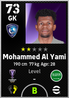 . Mohammed Al Yami is a Goalkeeper footballer from Saudi Arabia who plays for Al Hilal Sfc in eFootball 2026.