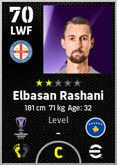 . Elbasan Rashani is a Left Wing Forward footballer from Kosovo who plays for Melbourne City Fc in eFootball 2026.