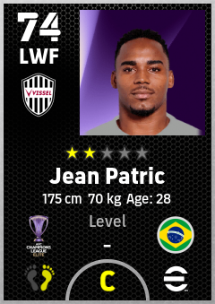 . Jean Patric is a Left Wing Forward footballer from Brazil who plays for Vissel Kobe in eFootball 2026.
