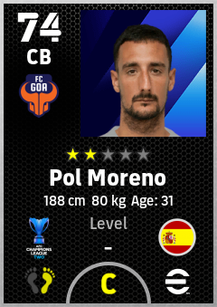 . Pol Moreno is a Center Back footballer from Spain who plays for Fc Goa in eFootball 2026.
