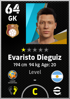 . Evaristo Dieguiz is a Goalkeeper footballer from Argentina who plays for Lanús M in eFootball 2026.