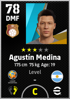 . Agustín Medina is a Defensive Midfielder footballer from Argentina who plays for Lanús M in eFootball 2026.