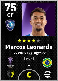 . Marcos Leonardo is a Center Forward footballer from Brazil who plays for Al Hilal Sfc in eFootball 2026.