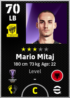 . Mario Mitaj is a Left Back footballer from Albania who plays for Al Ittihad Club in eFootball 2026.