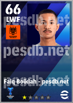 . Faiq Bolkiah is a Left Wing Forward footballer from Brunei who plays for Ratchaburi Fc in eFootball 2026.