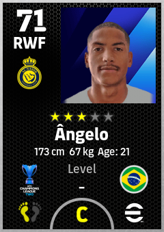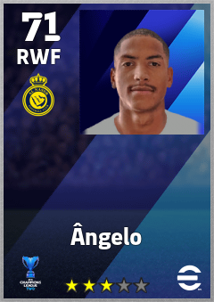 . Ângelo is a Right Wing Forward footballer from Brazil who plays for Al Nassr Fc in eFootball 2026.