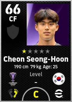 . Cheon Seong-Hoon is a Center Forward footballer from Korea Republic who plays for Fc Seoul in eFootball 2026.