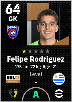 Felipe Rodriguez is a Goalkeeper footballer from Uruguay who plays for Miami Fc in eFootball 2026.