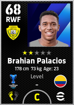 . Brahian Palacios is a Right Wing Forward footballer from Colombia who plays for Al Wasl Fc in eFootball 2026.