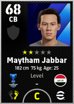 . Maytham Jabbar is a Center Back footballer from Iraq who plays for Al Zawraa Sc in eFootball 2026.