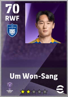 . Um Won-Sang is a Right Wing Forward footballer from Korea Republic who plays for Ulsan Hd Fc in eFootball 2026.