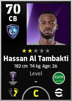 . Hassan Al Tambakti is a Center Back footballer from Saudi Arabia who plays for Al Hilal Sfc in eFootball 2026.