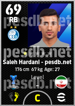 . Saleh Hardani is a Right Back footballer from Ir Iran who plays for Esteghlal Fc in eFootball 2026.