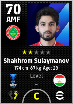 . Shakhrom Sulaymanov is a Attacking Midfielder footballer from Tajikistan who plays for Fc Istiklol Dushanbe in eFootball 2026.