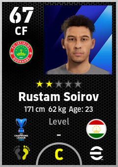 . Rustam Soirov is a Center Forward footballer from Tajikistan who plays for Fc Istiklol Dushanbe in eFootball 2026.