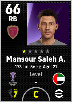 . Mansour Saleh A. is a Right Back footballer from United Arab Emirates who plays for Al Wahda Fc in eFootball 2026.