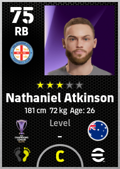 . Nathaniel Atkinson is a Right Back footballer from Australia who plays for Melbourne City Fc in eFootball 2026.