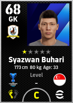 . Syazwan Buhari is a Goalkeeper footballer from Singapore who plays for Tampines Rovers Fc in eFootball 2026.