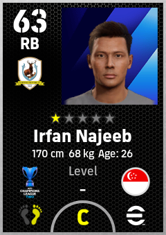 . Irfan Najeeb is a Right Back footballer from Singapore who plays for Tampines Rovers Fc in eFootball 2026.