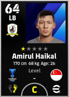 . Amirul Haikal is a Left Back footballer from Singapore who plays for Tampines Rovers Fc in eFootball 2026.
