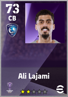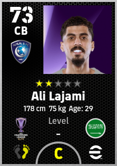 . Ali Lajami is a Center Back footballer from Saudi Arabia who plays for Al Hilal Sfc in eFootball 2026.