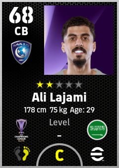 . Ali Lajami is a Center Back footballer from Saudi Arabia who plays for Al Hilal Sfc in eFootball 2026.