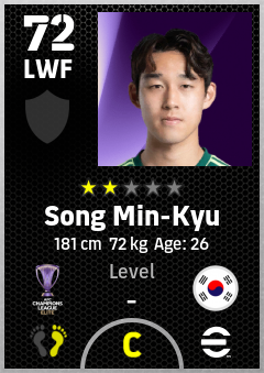 . Song Min-Kyu is a Left Wing Forward footballer from Korea Republic who plays for Fc Seoul in eFootball 2026.