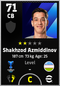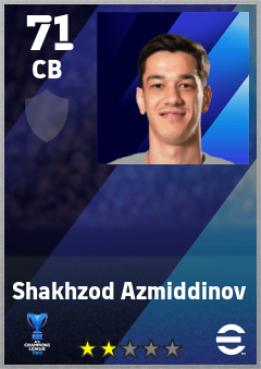 . Shakhzod Azmiddinov is a Center Back footballer from Uzbekistan who plays for Fc Andijan in eFootball 2026.